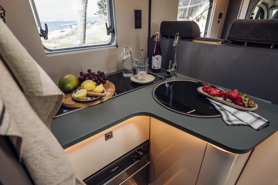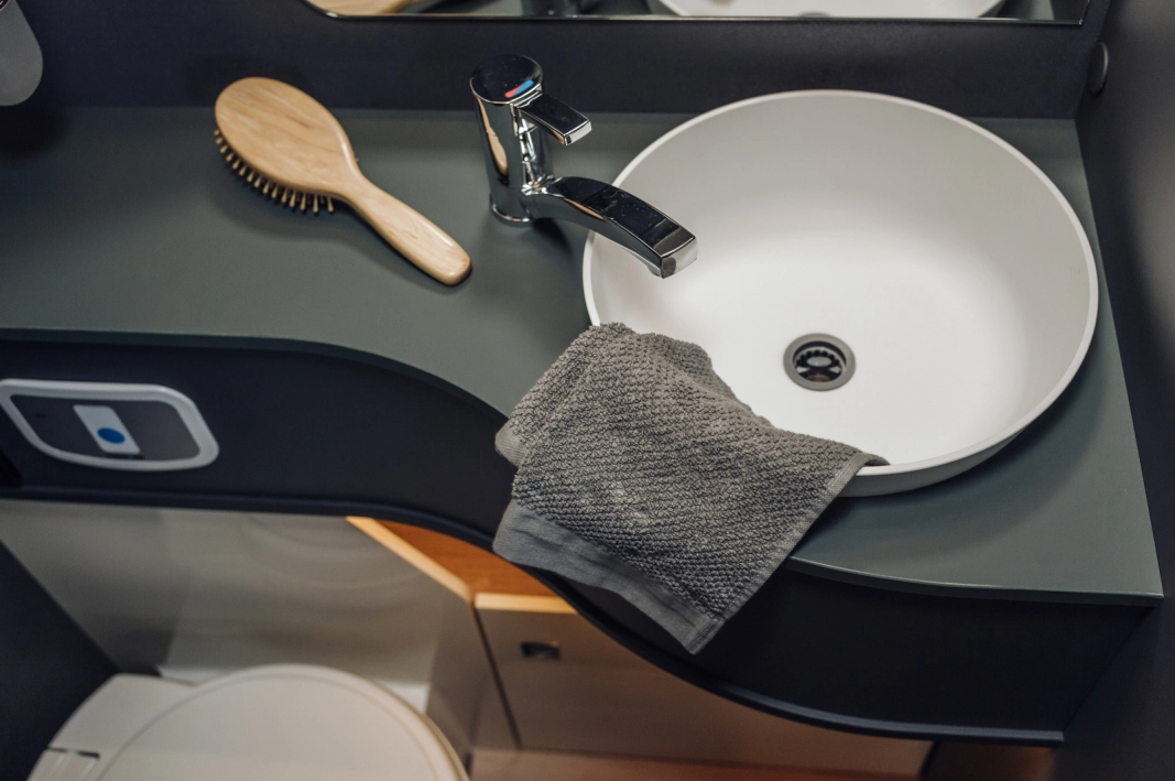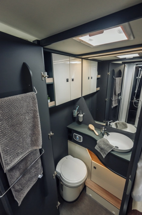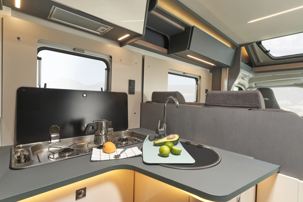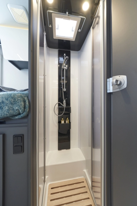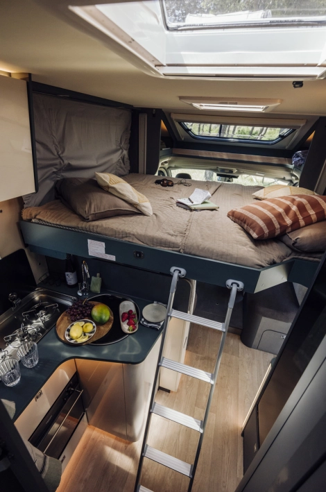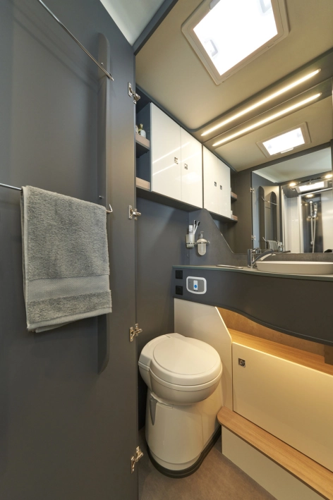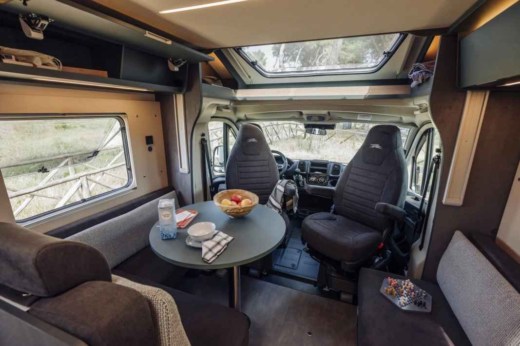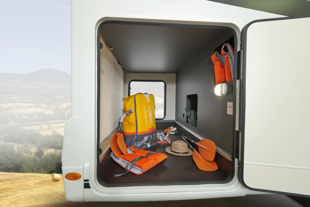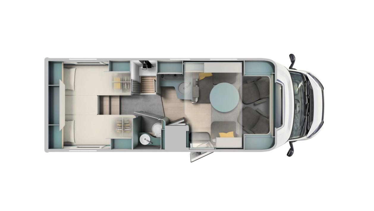 Laika Kosmo L 409 to wyjątkowa włoska półintegra stworzona z najwyższą dbałością o szczegóły i detale wewnątrz jak i zewnątrz kampera. Jeden z najbardziej dopracowanych modeli włoskiej marki Laika, cenionej za wysoką jakość wykonania, elegancki design oraz solidną zabudowę. To idealny pojazd dla osób, które oczekują komfortu podróżowania porównywalnego z apartamentem na kołach. W tym układzie znajdziemy przestronny salon w układzie litery L i okrągłym stołem, pełnowymiarową, dużą kabinę prysznicową i łazienkę z ubikacją oraz umywalką zamykaną drzwiami z funkcją oddzielenia łazienki od kuchni i salonu. W tylnej części kampera znajdują się dwa łóżka wzdłużne, które mają długość ponad 2 metrów, dzięki czemu ten model idealnie sprawdzi się dla wysokich osób. Ten układ wyróżnia także bardzo duży garaż.