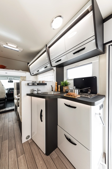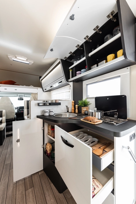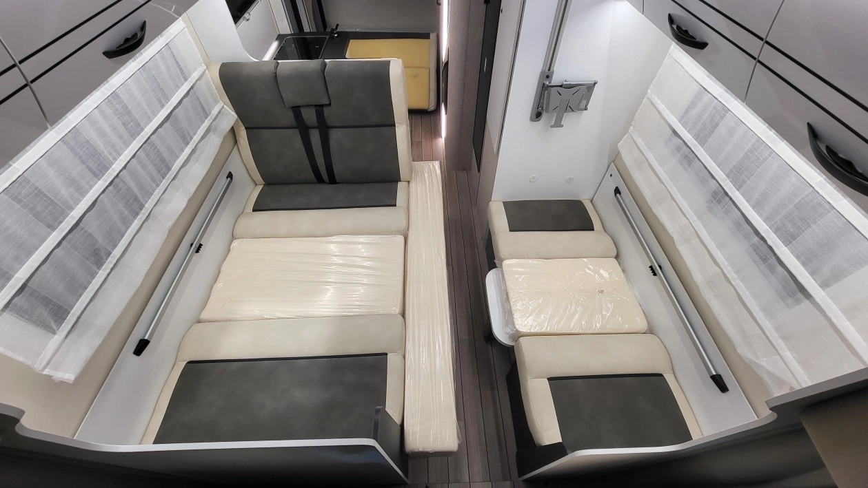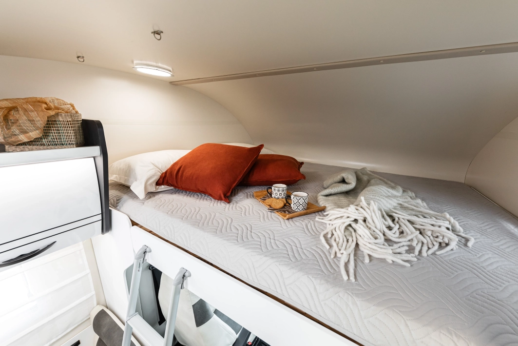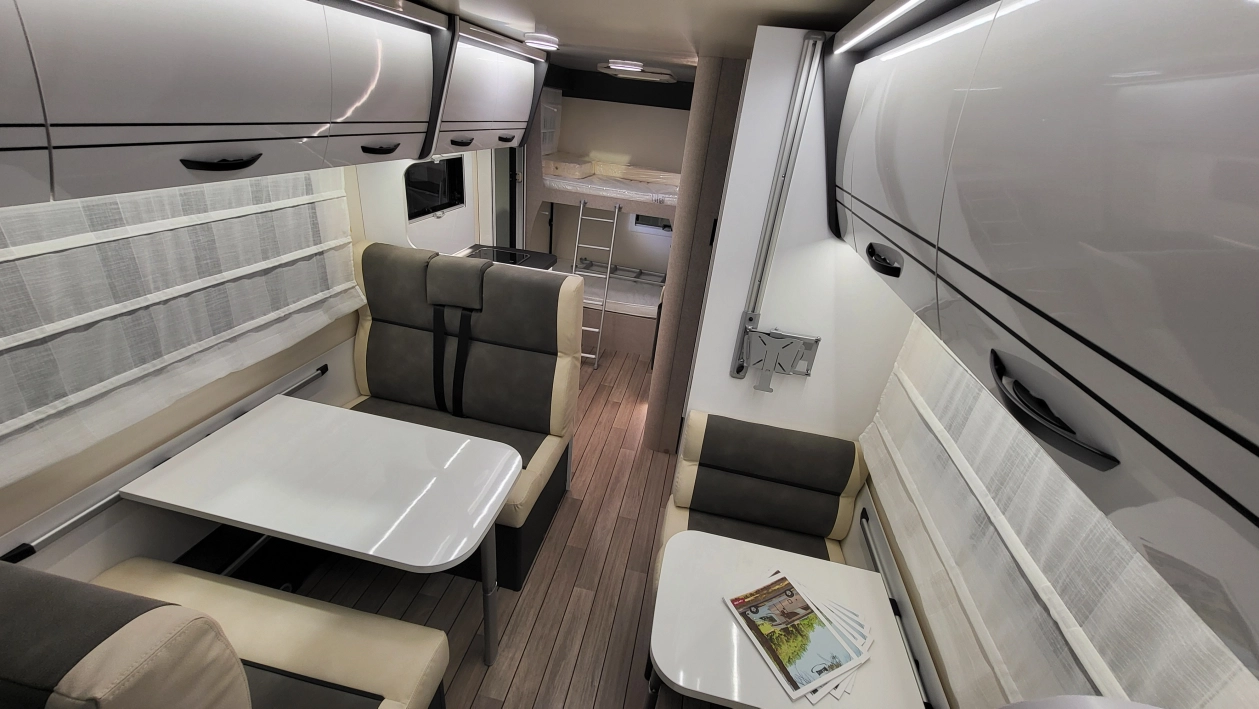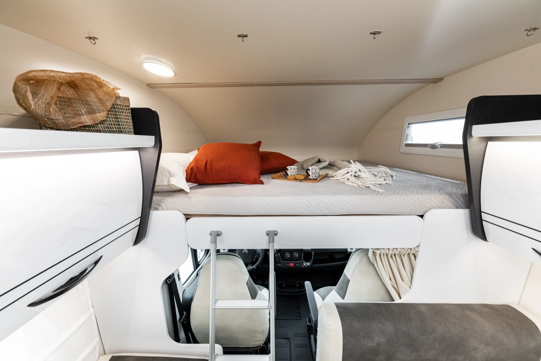 McLouis Glamys 322Siedmioosobowa alkowa, która pomieści całą rodzinę. Kamper o długości całkowitej do 7 metrów, z DMC do 3,5 t., i homologowanymi siedmioma miejscami do jazdy, spania i jedzenia.
