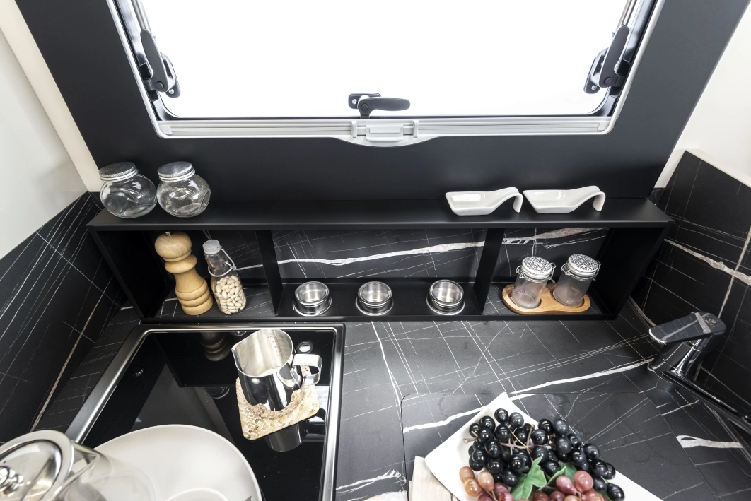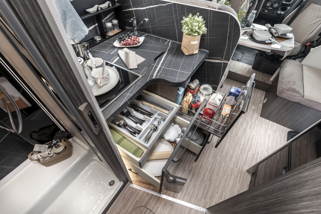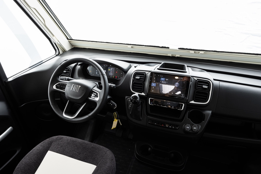 Pięcioosobowy kamper w pełni zintegrowany na podwoziu nowego Fiata Ducato w układzie salonu klasycznej „L”, opuszczanego manualnie łóżka nad szoferką dla 2 osób, przestronną kuchnią z licznymi schowkami i dużą łazienką z pełnowymiarową kabiną prysznicową. Łazienka zamykana jest z obu stron. Z tyłu pojazdu znajduje się układ łóżka centralnego/królewskiego. Wszystko to otrzymujemy w kamperze o długości 7,45 metra. Ten egzemplarz wyróżnia się także bogatym wyposażeniem fabrycznym, do którego zachęcamy do zapoznania się z pozostałym opisem tego modelu.