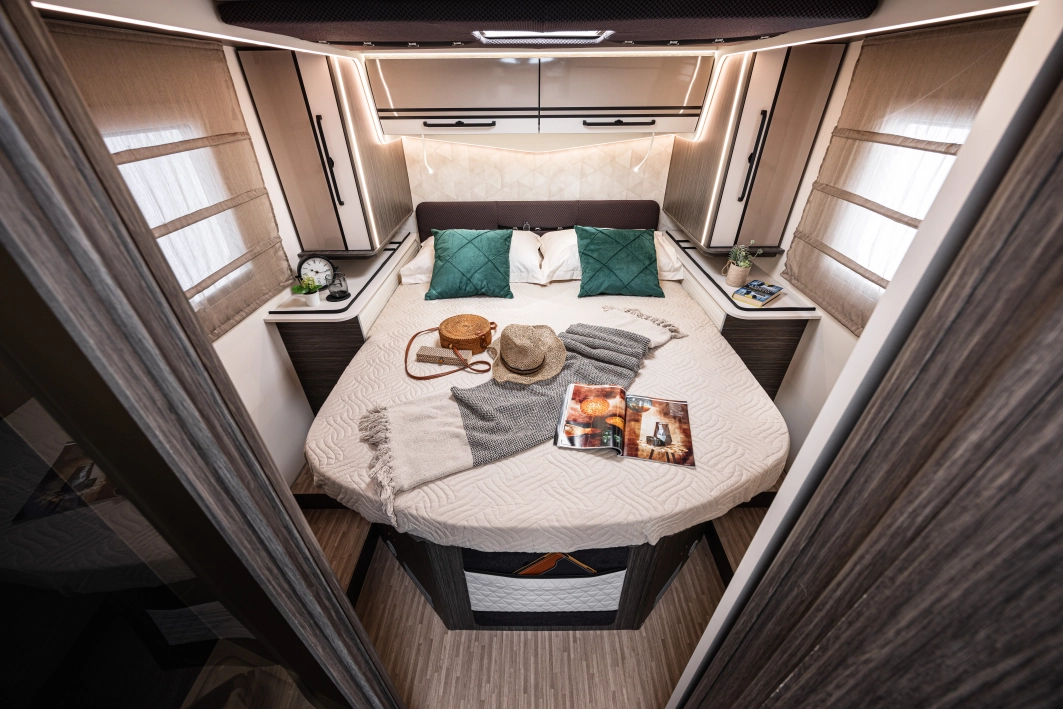 Elektrycznie regulowana wysokość łóżka królewskiego/centralnego w tylnej części pojazdu