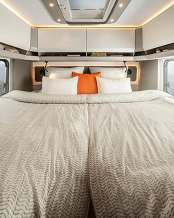 Pakiet „Lithium Power Energy” (zamiast standardowego) Akumulator litowo-żelazowo-fosforanowy 1 x 340 Ah (pojemność rozładowania) 100% = 340 Ah) Ładowarka/inwerter kombinowany o mocy 3000 W, do 120 A, z preselekcją napięcia sieciowego/kompensacją napięcia sieciowego (Power Share), w pełni automatyczną ochroną akumulatora najwyższej klasy i dodatkowym, 7-calowym, wysokiej jakości panelem sterowania.