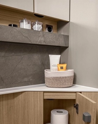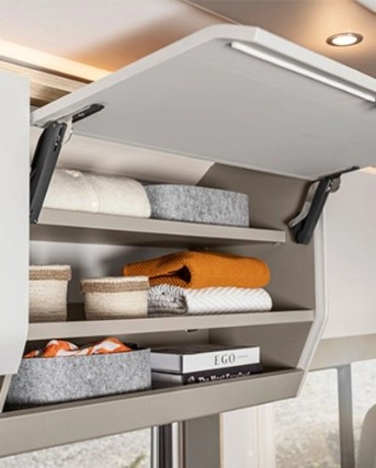 Klimatyzacja dachowa w łazience lub w korytarzu między prysznicem a łazienką, sterowana pilotem na podczerwień (wysokość pojazdu + 150 mm)