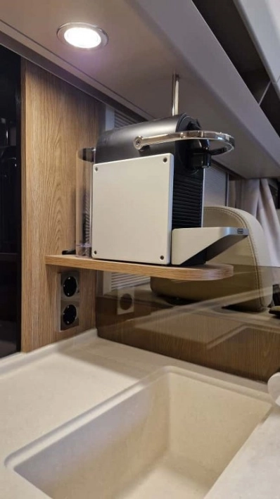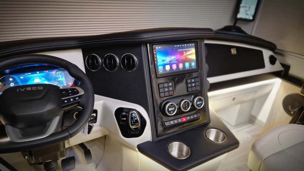 Pakiet podwozia DMC 5800 kg, skrzynia biegów ZF, mechanizm różnicowy, klimatyzacja, felgi aluminiowe, przygotowanie pod hak holowniczy, wymiennik ciepła, dystanse kół