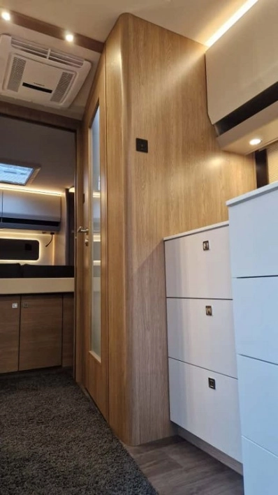 Klimatyzacja dachowa Dometic Freshjet 2200 w korytarzu łazienkowym