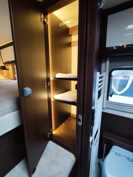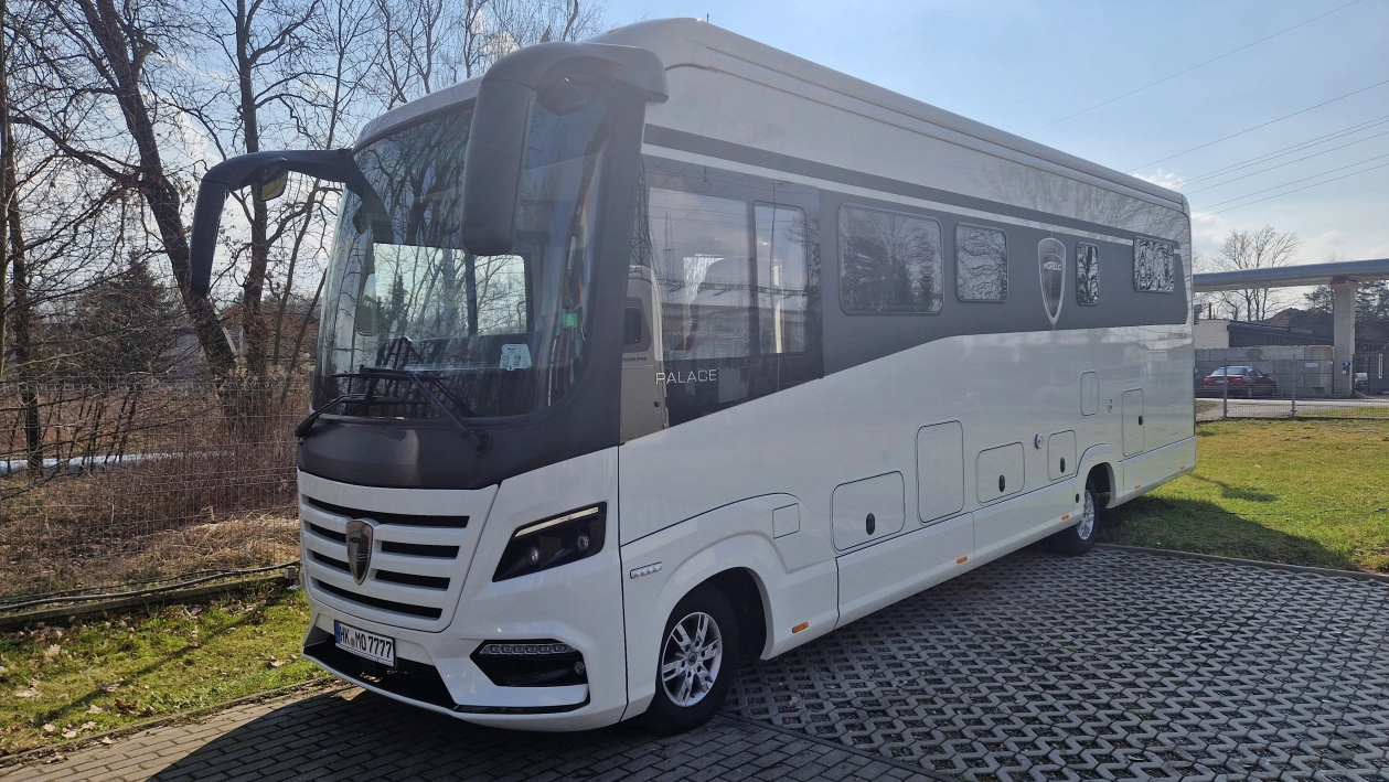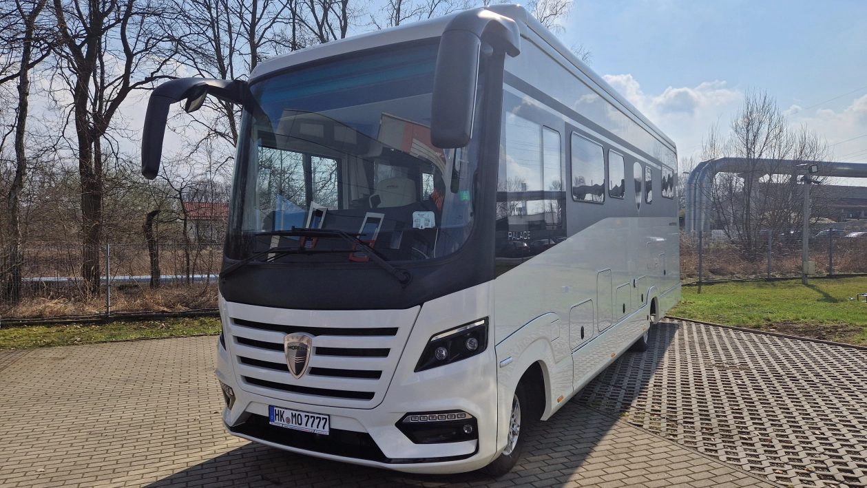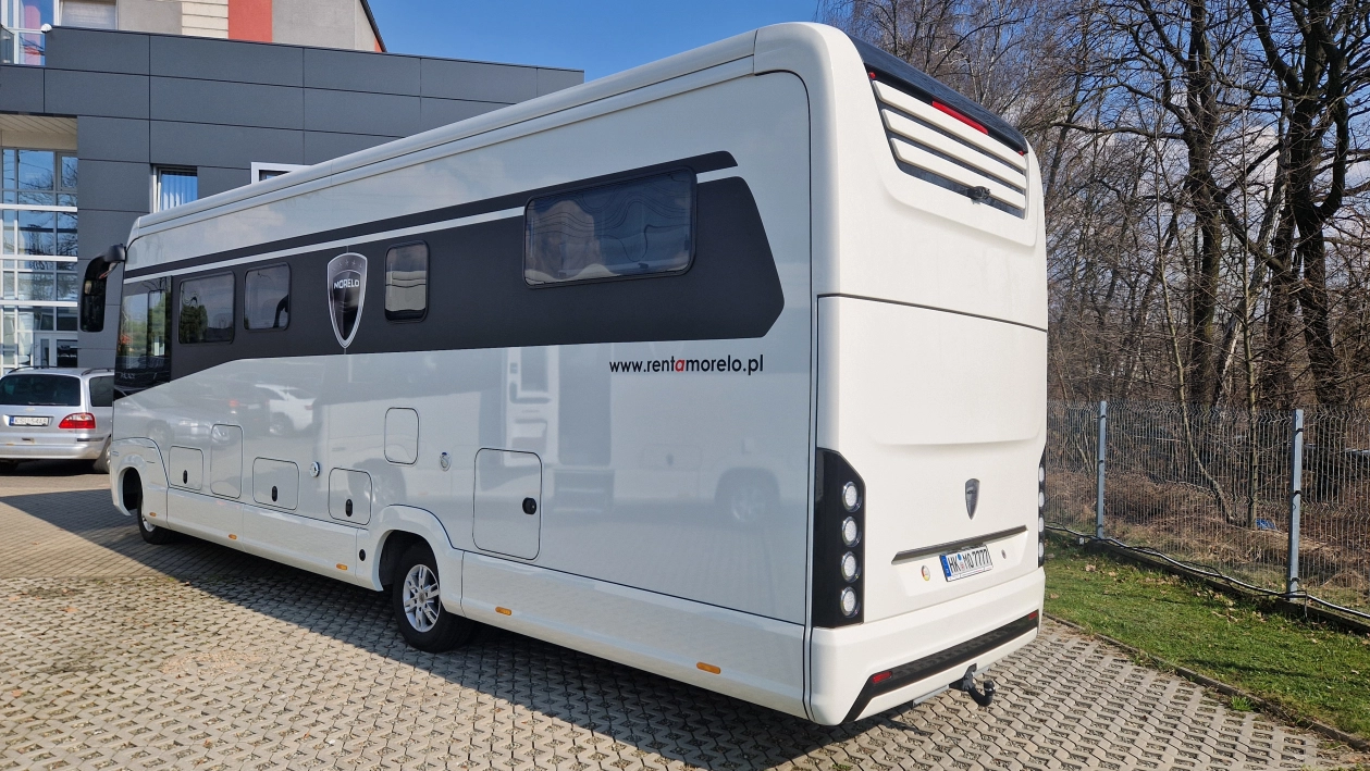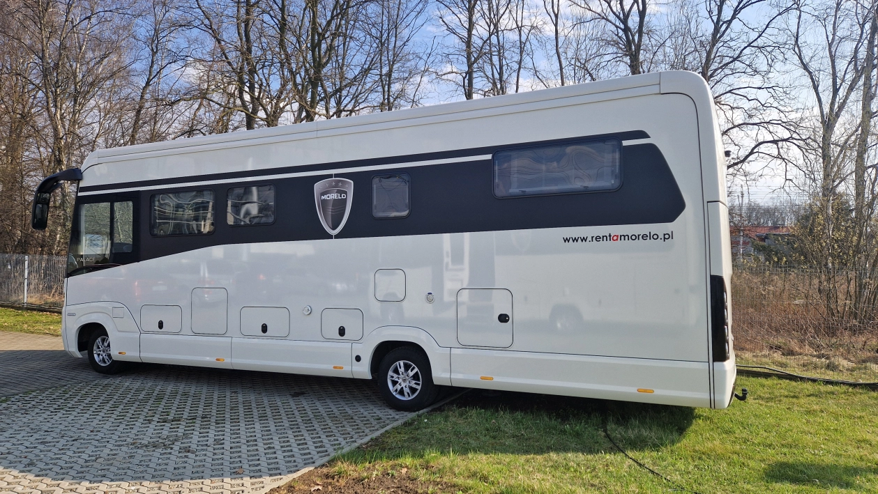 Morelo Palace to pojazd przeznaczony dla doświadczonych, a jednocześnie bardzo wymagających miłośników karawaningu. Długość wynosząca 9,54 metra, szerokość 2,4 m oraz wysokość 3,49 m sprawią, że poczujesz się w nim jak w domu. Pojazd zbudowany jest na 7,5 tonowym podwoziu marki Iveco. Źródło napędu to 4 cylindrowy silnik o pojemności 3 litra i mocy 207 KM połączony z 8 stopniową automatyczną skrzynią biegów. Napęd przenoszony jest na tylną oś.