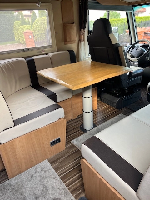 Oferuję do sprzedania kompletnie nowo wyposażony kamper marki premium Niesmann&Bischoff typ Arto 69P. Jestem od ponad roku pierwszym właścicielem w Polsce. Zakupiłem i wyposażyłem we wszystko co potrzebne do życia w podróży będąc maksymalnie niezależnym od świata zewnętrznego. Kamper całoroczny, tzn. podwójna podłoga dodatkowa izolacja, podgrzewane butle gazowe itd. Instalacja LPG. Do tego na wyposażeniu także agregat prądotwórczy, oczywiście dodatkowo panele słoneczne. Nowe akumulatory Niklowo-żelazowo-fosforowe z dedykowanym systemem ładowania renomowanej firmy Victronic. Z tyłu pojazdu platforma na skuter i rower (nie byle jaki w moim przypadku Yamaha ADV 350 cm3) wzmocniona do 200 kg nośności. Koła 18" z całorocznymi oponami w bardzo dobrym stanie. Całe wyposażenie campingowe prawie nie używane, nowe, to samo dotyczy kompletnego wyposażenia wewnątrz z kubkami, talerzami, nożami, garnkami, szklaneczkami do whisky itd. Zainstalowane dwa alarmy , w tym gazowy, plus dodatkowa blokada elektryczna ryglująca zamek drzwi. Nowe radio z tabletem i systemem Car Play. System samopoziomowania. Silnik Fiat-Iveco 3.0 ltr 170 KM z manualną 6-cio biegową skrzynią biegów i tempomatem, zapewniający komfortowe podróżowanie i skuteczne hamowanie na zjazdach.