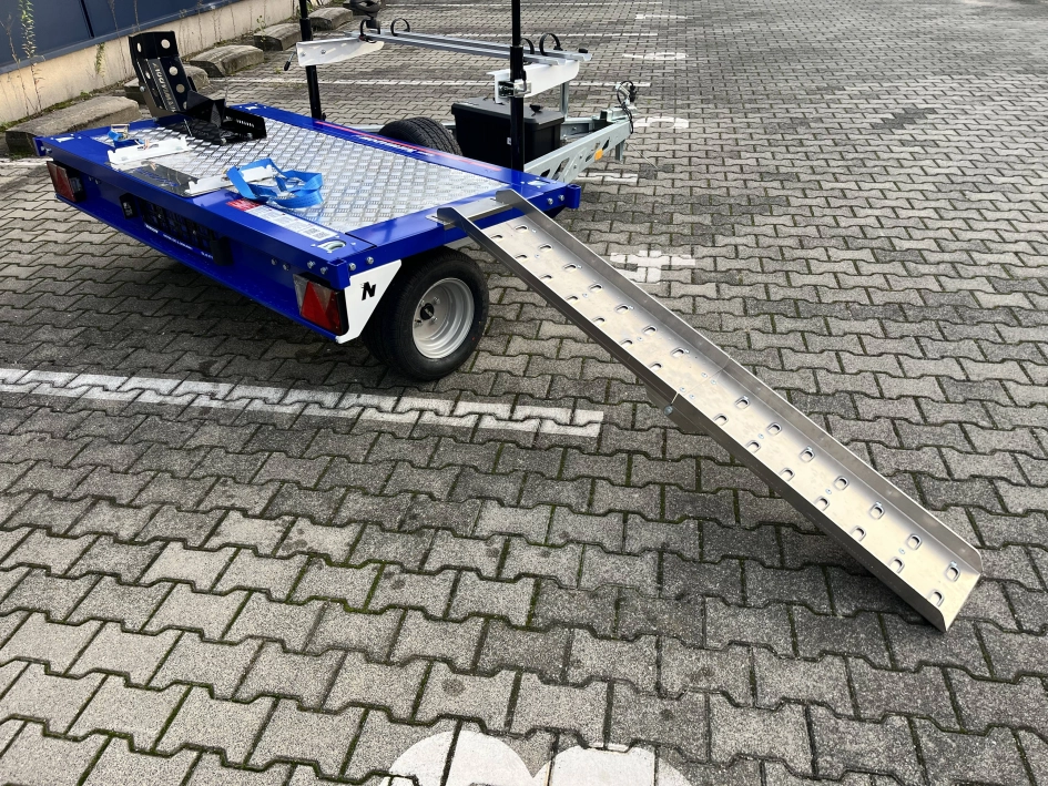 MOTOCAMP to odpowiedź na problem przeładowania kamperów i samochodów osobowych o DMC 3,5t. Jest to niehamowana lekka przyczepa (DMC 750kg) o ładowności 515kg, dzięki temu możemy na nią załadować wszystko to co z racji wagi czy gabarytu, nie zmieści nam się do kampera czy osobówki. Motocykl, skuter, dodatkowe rowery (również elektryczne), hulajnogi czy inny szpej wodniacki czy kempingowy, który bez problemu przymocujemy na platformie. Dzięki podwójnie łamanemu najazdowi i platformie na wysokości ~60cm łatwość załadunku motocykla czy skutera jest niesamowita!