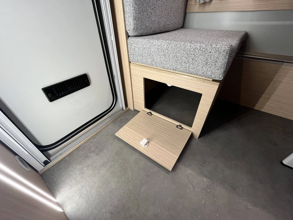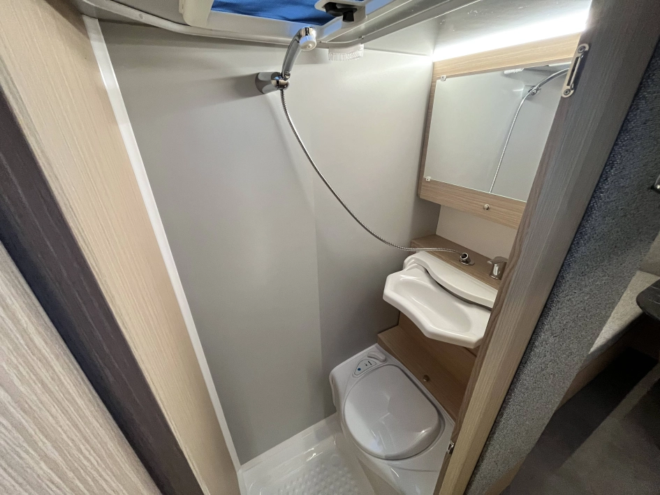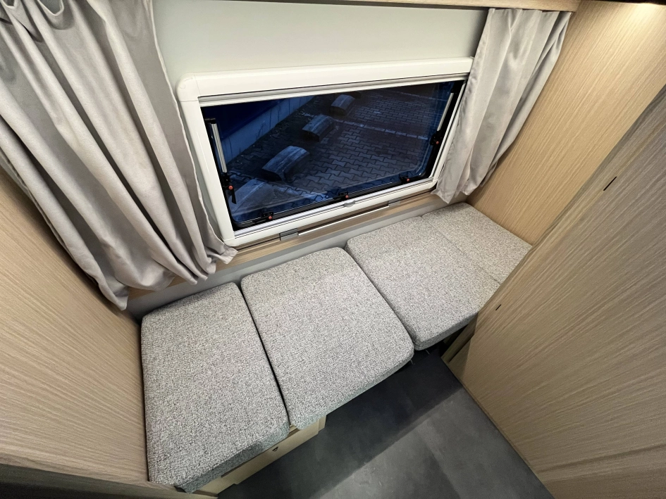 WYPOSAŻENIE STANDARDOWE zawarte w cenie katalogowej na rok modelowy 2026 obejmuje: oś hamowaną, amortyzatory, urządzenie najazdowe, koło podporowe, koła z felgą stalową, 4 podpory stabilizujące, nadwozie w kolorze białym, zewnętrzne oklejenie ścian, kuchnię gazową i zlewozmywak, meble ze sklejki, okna podwójne barwione (kolor grafitowy), zasłony w oknach (tkanina do wyboru wg wzornika), materace i oparcia (tkanina do wyboru wg wzornika), lodówka kompresorowa 55L, stopień wejściowy Fiamma, kabel przyłączeniowy 25m, korba do podpór, 2x okno dachowe 400x400, wywietrznik dachowy w łazience 280x280, lampa przedsionka LED, oświetlenie wewnętrzne LED, oświetlenie drogowe LED, trzecie światło STOP, gniazdko 230V, gniazdo USB, zasilacz 12v (z funkcją 7 fazowego ładowania akumulatora), akumulator żelowy 100Ah, dotykowy panel sterowania, ogrzewanie S3004, roleto-żaluzje we wszystkich oknach, zbiornik wody 30L., uchwyt koła zapasowego w bakiście, listwę fartucha, toaletę kasetową i prysznic z instalacją ciepłej wody (bojler elektryczny Truma TT2), dekoracyjny panel LED (przy wejściu), panel obiciowy z wieszakami