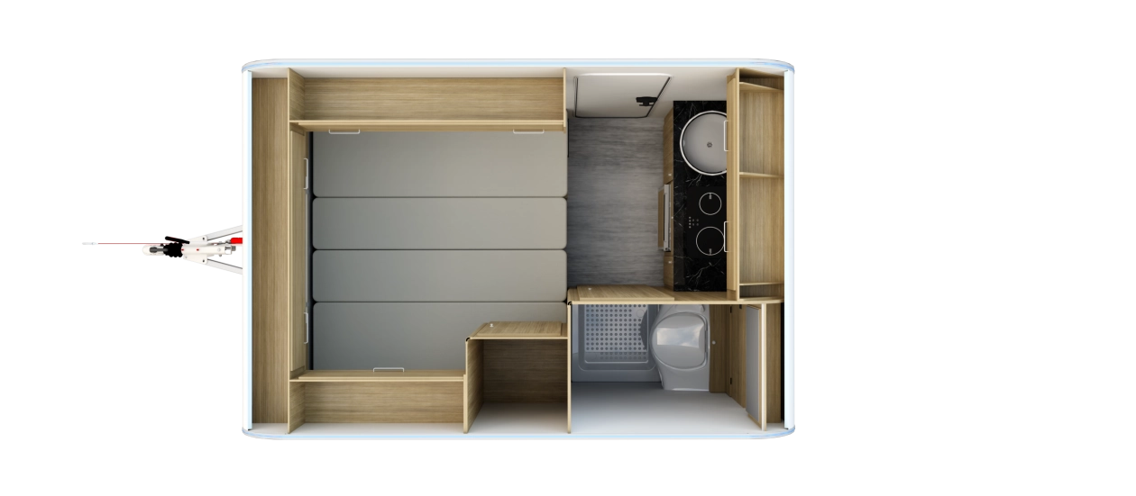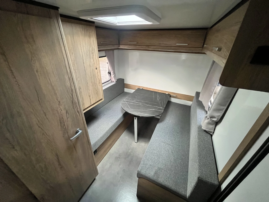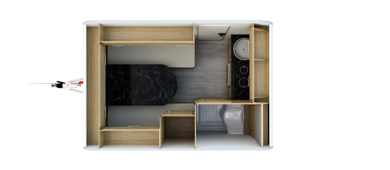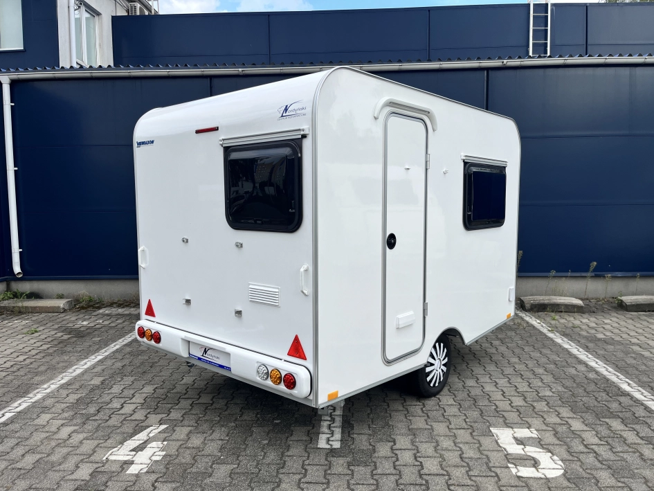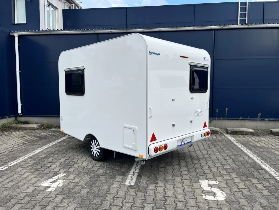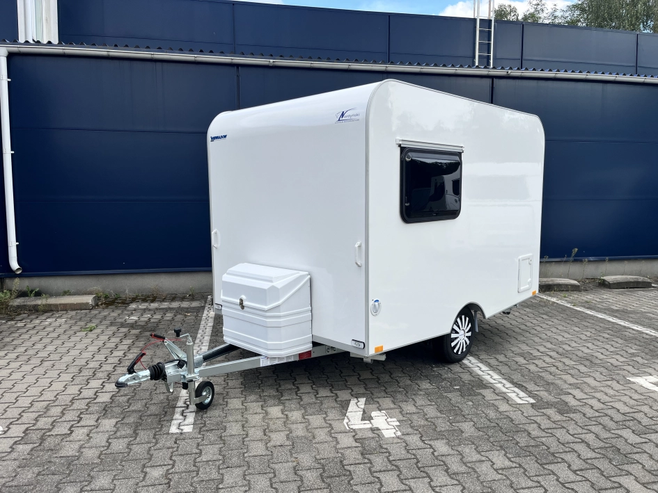 NTL-LAZUR - Najnowsza seria lekkich przyczep kempingowych Lazur – idealne połączenie funkcjonalności, przestronności i przystępnej ceny. Standardowe wyposażenie przyczepy NTL – LAZUR obejmuje nowoczesny aneks kuchenny, który zapewnia pełną funkcjonalność. Znajdziesz tu dwupalnikową kuchnię gazową Dometic, lodówkę kompresorową YOLCO o pojemności 59 litrów oraz zlewozmywak – wszystko, czego potrzebujesz, by przygotować posiłki w komfortowych warunkach. Ponadto, przyczepa wyposażona jest w toaletę z kasetą toaletową oraz prysznic z termą i brodzikiem, co zapewnia pełną wygodę podczas długich podróży. W przyczepie NTL LAZUR w części dziennej znajduje się funkcjonalny stół, który po rozłożeniu zamienia się w przestronne łóżko o wymiarach 175 x 191 cm, doskonałe dla dwojga dorosłych bądź dla trzyosobowej rodziny. To idealne rozwiązanie dla osób, które szukają wygody i przestronności podczas podróży.