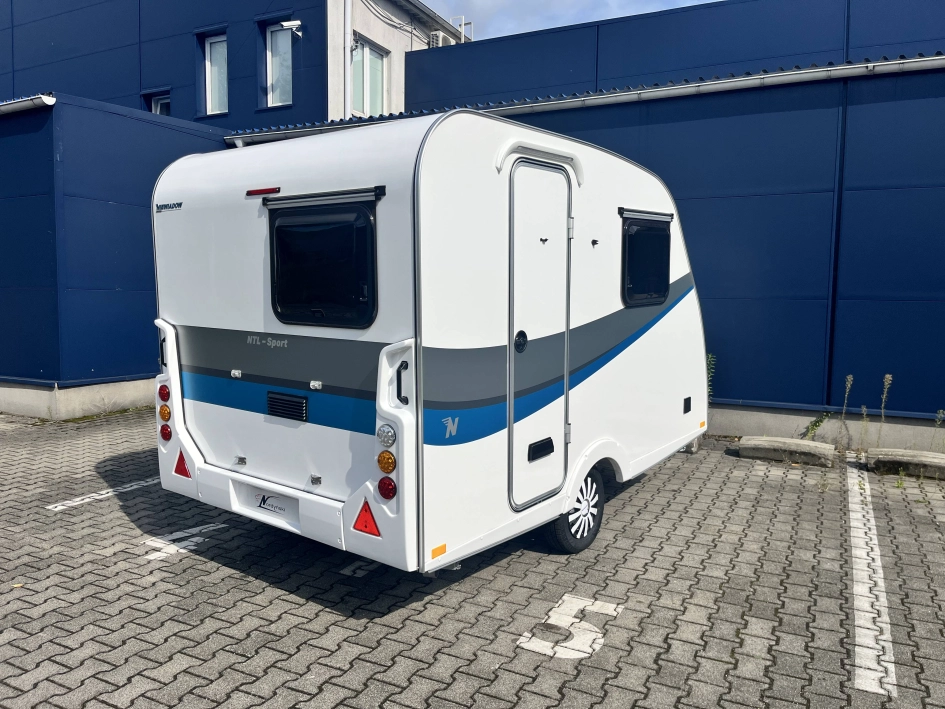 NTL-Sport - model przyczepy kempingowej naszej produkcji, zbudowany z izolowanych płyt typu sandwich to połączenie modelu N- Cross i mniejszego modelu Sprint. W części dziennej przyczepy znajduje się stół, zamieniający się w rozkładane spore łóżko (170 x 190 cm ), mieszczące trzyosobową rodzinę. W standardowym wyposażeniu przyczepy znajdziemy aneks kuchenny składający się z dwupalnikowej kuchni gazowej Dometic, 57 litrowej lodówki Dometic i zlewozmywaka oraz toaletę, w której znajdziemy kasetę toaletową oraz prysznic z termą i brodzikiem.