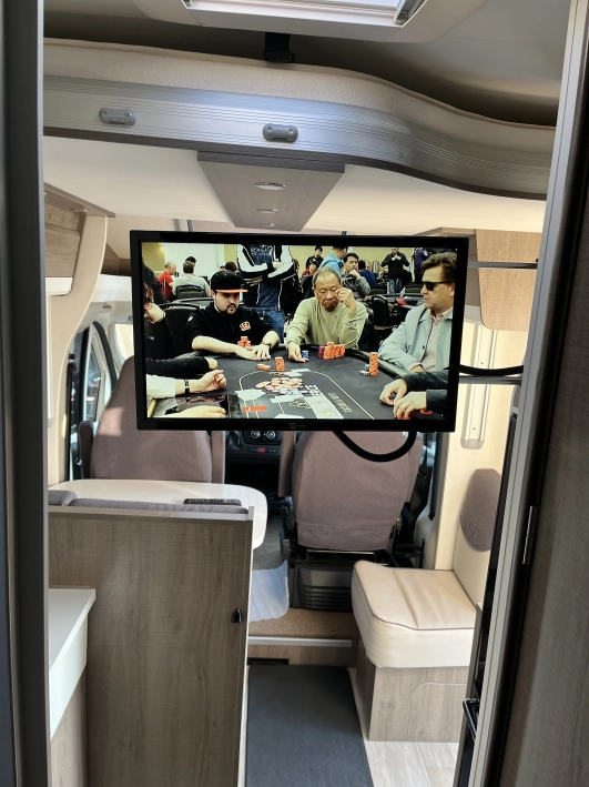 Kamper w idealnym stanie, duży i funkcjonalny. Ma niski przebieg, co jest jego dużą zaletą. Garażowany przez cały rok. Posiada duży, funkcjonalny garaż . Przestrzenna sypialnia z dużymi oknami, z podnoszonym materacem, który umożliwia wgląd do garażu, Schowki i szafy pod łóżkiem. Dodatkowe rozsuwane drzwi sypialni. Dwuosobowe dodatkowe łóżko opuszczane elektrycznie. W wyposażeniu duża lodówka z zamrażarką, antena satelitarna TV , czujniki z kamerą cofania. Skrzynia biegów automatyczna -9 biegowa. Aluminiowe wykończenie deski rozdzielczej . Skórzana wielofunkcyjna kierownica oraz mieszek dźwigni zmiany biegów. Pneumatyczne zawieszenie osi tylnej. Radio Alpine z wyświetlaczem 9” z GPS. Hak holowniczy. Felgi aluminiowe. Roleta przedniej szyby szoferki z regulacją góra/dół. Rolety bocznych okien szoferki. Wykładzina szoferki. Centralny zamek drzwi zabudowy. Moskitiera drzwi zabudowy. Wnętrze kampera przytulnie oświetlone światłem ledowym. Więcej informacji pod telefonem.601 986221