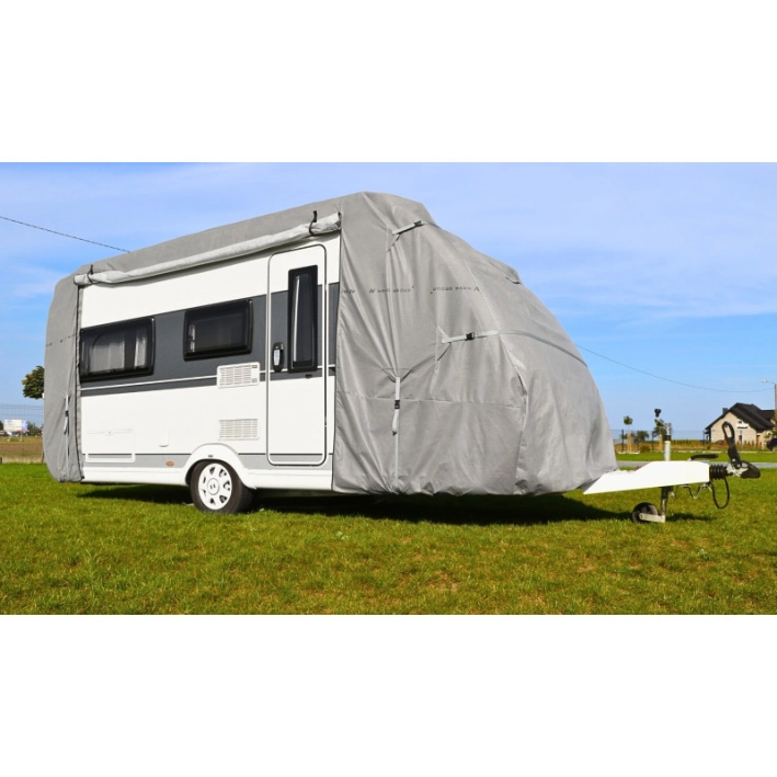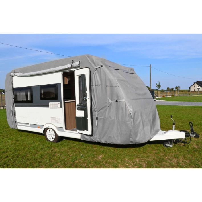 Pokrowiec na przyczepę kempingową Nava Group to profesjonalna ochrona pojazdu przed niekorzystnymi czynnikami zewnętrznymi przez cały rok.