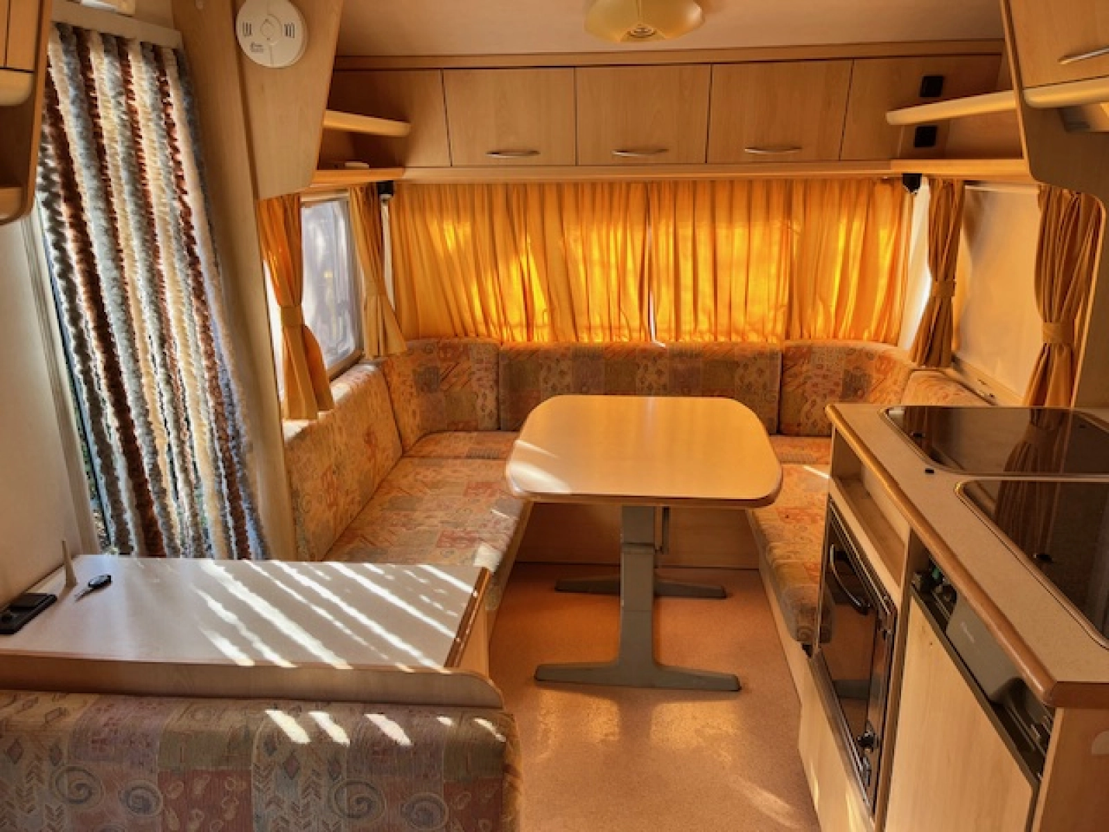 Jedna duża kanapa w kształcie "podkowy" (rozkładana na przestronne łóżko dwuosobowe).