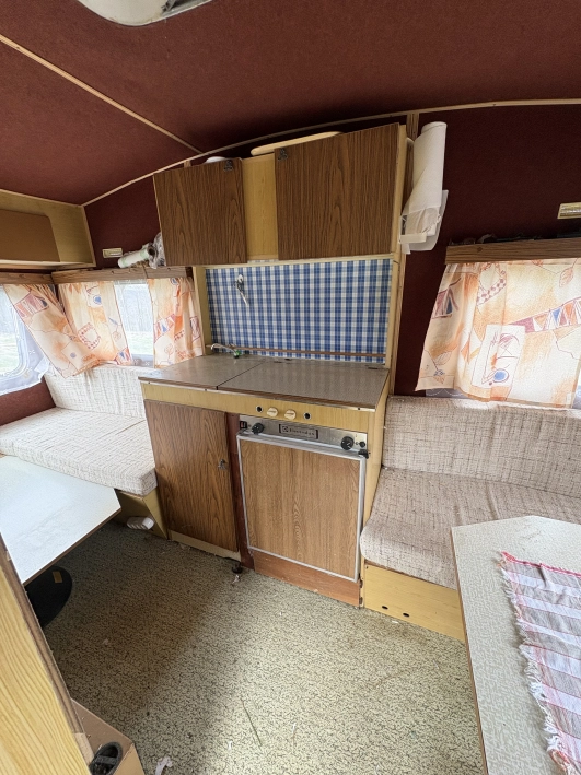Do sprzedania praktyczna, przyczepa campingowa marki WILK SPORT 370 z 1980 roku (rok produkcji podany w przybliżeniu). Przyczepa 4 osobowa wyposażona w aneks kuchenny z kuchenką 2 palnikową, lodówką oraz zlewozmywak. Ogrzewana. Część dzienna z rozkładanymi stolikami. Przyczepa używana stacjonarnie na działce rekreacyjnej pod wiatą . Sucha . Wyposażenie sprawne.Ogrzewana. Wszystkie szyby całe. Tapicerka odnowiona.Przyczepa bez prawa do rejestracji. Idealna na działkę, zaplecze socjalne budowy czy ochrony. Posiada koła ale nie jest mobilna ze względu na to, źe długo stała stacjonarnie. Sprzedaję jako uszkodzoną ze względu na niemożność rejestracji. Transport laweta we własnym zakresie. Cena do negocjacji. Gorąco polecam.