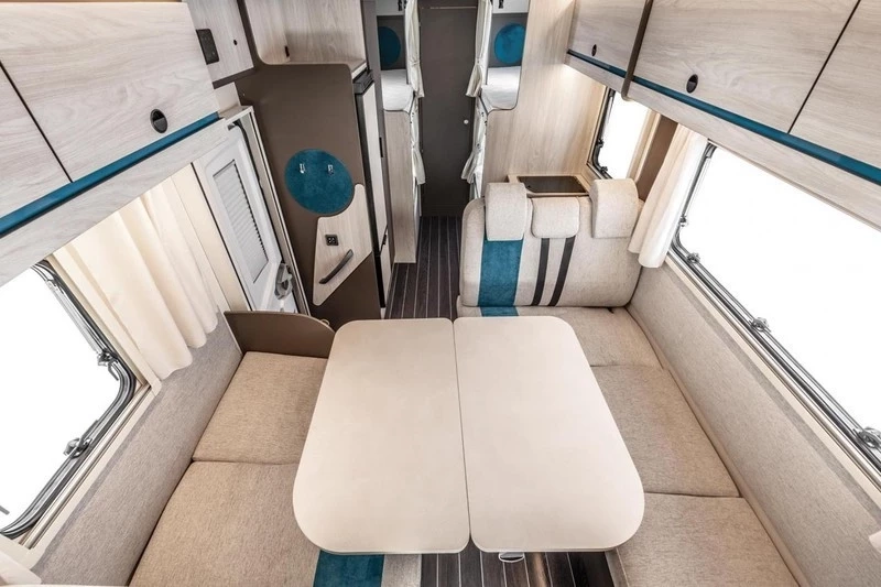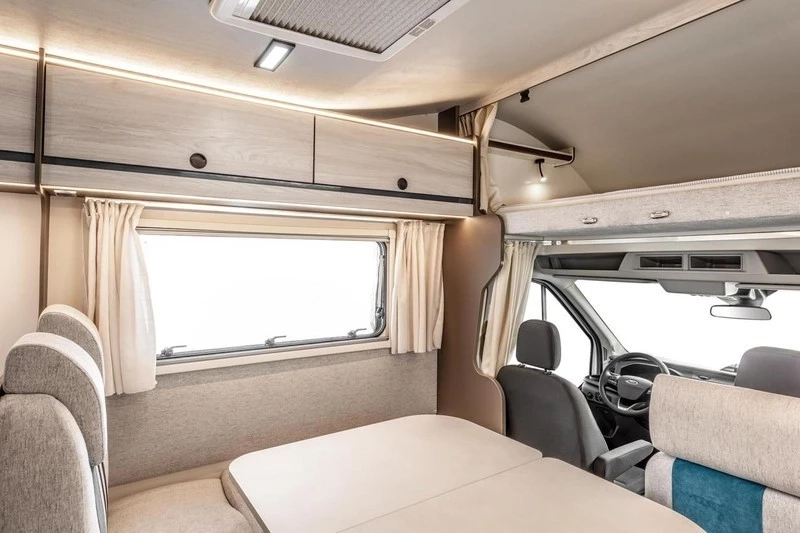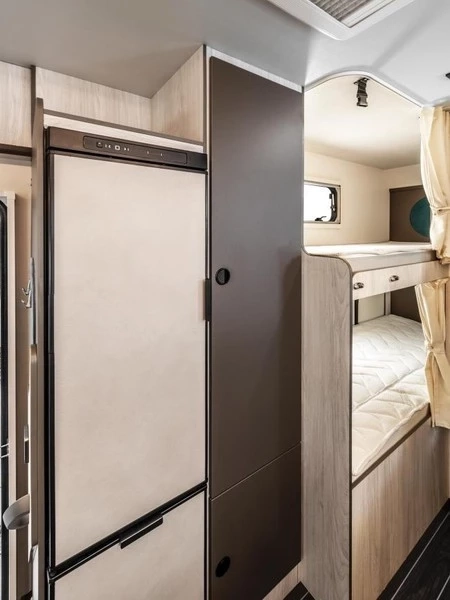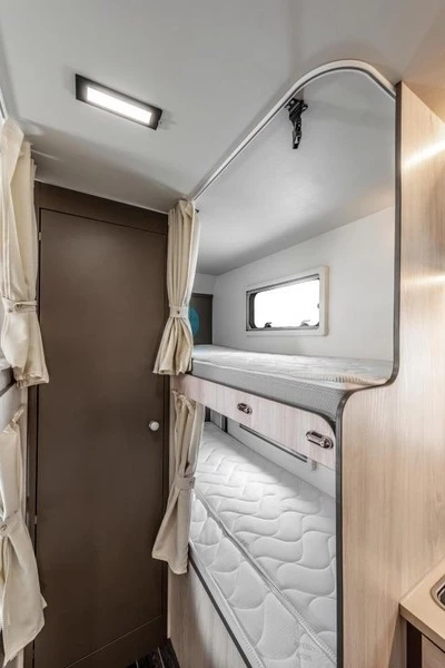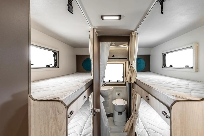 Kamper oferuje 6 homologowanych miejsc do jazdy i spania, co czyni go idealnym wyborem dla rodzin lub grupy przyjaciół. Przemyślany układ wnętrza zapewnia wygodę podczas podróży i postoju – na pokładzie znajdziesz przestronną alkowę ( łóżko 140x220 ) oraz cztery wygodne łóżka piętrowe( 4 szt. 78x200), a każde miejsce do spania ma swoje pełne wymiary bez konieczności składania stołów czy siedzeń.
