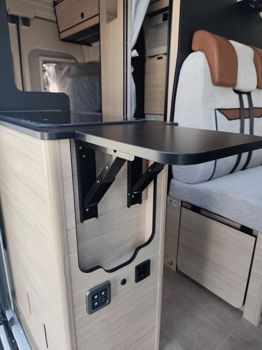 Poza łóżkiem poprzecznym i miejscem stałym, jest możliwość stworzenia dodatkowego miejsca do spania ze stołu kuchennego co daje łącznie 3 miejsca do spania i 4 do podróżowania w standardzie w kompaktowym wydaniu.