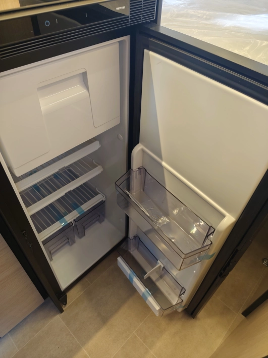 W przedniej części zabudowy znajduje się aneks kuchenny: lodówka kompresorowa (90 l) , kuchenka gazowa dwupalnikowa, zlew z pokrywą.
