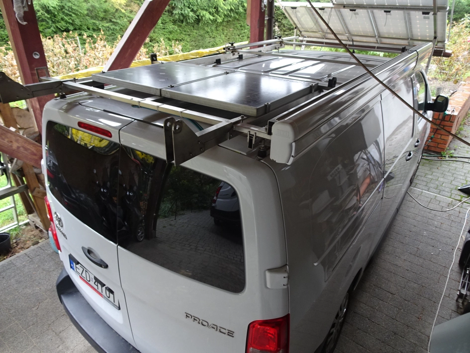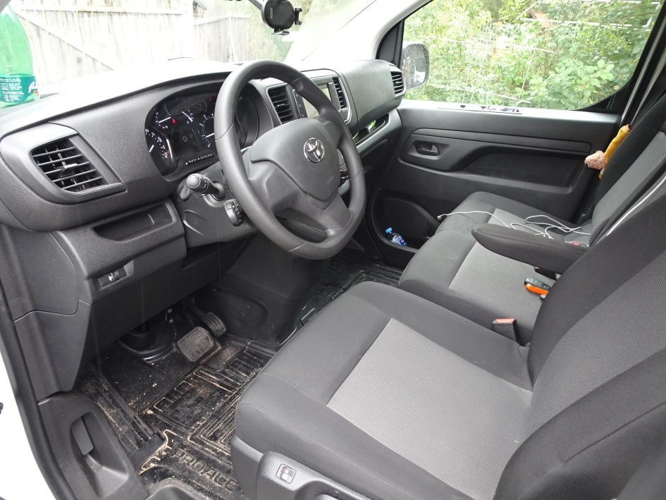 Sprzedam TOYOTA ProAce LONG , rok produkcji 2023, silnik disel, pojemność 1997 cm, 3 osobowy, czujnik niezpiętych pasów, poduszka powietrzna kierowcy i pasażera, automatyczne wycieraczki, ABS, VSC, BA, tempomat i ogranicznik prędkości, radioodbiornik fabryczny, centralny zamek, klimatyzacja , fotel kierowcy podgrzewany z regulacją wysokości i odcinka lędźwiowego, kanapa dwuosobowa po stonie pasażerów, pełna przegroda przestrzeni ładunkowej przeszklona, uchwyty w podłodze do mocowania ładunku, kamera cofania, rejestrator, drzwi przesuwne po stronie prawej , drzwi tylne przeszklone otwierane 180 stopni, zabudowa biurowo-sypialniano-kuchenna, bagażnik dachowy, panel fotowoltaiczny na dachu wraz z przetwornicą i instalacją wewnątrz, gwarancja i ubezpieczenie 07/2026, faktura VAT