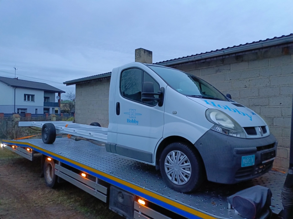 Renault Trafic Kamper 2005r zarejestrowany ok 6 lat jako pojazd specjalny , kamper.Fabrycznie nie był to blaszak ani niskopodwozie do zabudowy tylko pojedyncza kabina z rama do zabudowy, mało spotykany model , jak Master czy Movano, mam to udokumentowane.Można zrobić kampera ( podobnie jak na ostatnich foto ) zakładając zabudowę oraz oś z przyczepy kempingowej. Posiada siłownik sterujący tylnymi hamulcami. Aktualnie ma założoną sztywna tylną oś ( do transportu i manewrowania)Stan bdb , ekonomiczny 8-10l przy 100-110km/h, przez ostatnie 6 lat nie sprawiał mi żadnych problemówRama bez rdzy Ważne oc i przegląd do 05/2025DMC 2940kg , uciag na haku w dowodzie 2000kg, masa własna orientacyjne 1500kg , wysokość góry ramy ok. 55cm , długość pojazdu w CEPiK 775cmW zeszłym roku wymieniony rozrząd , oleje, filtry , nowy akumulator3 osobowy, wersja bez klimatyzacji- posiada dodatkowy wiatrak-wentylator ( dobrze sprawdzał sie w Polsce w upale), el szyby centr zam , wspomag kier , duże radio, kamera cofania, dodatkowo wyciszona kabinaMożna też dołożyć klimę , koszt na olx lub allegro ok 1500zl za cały zestaw oryginalnej klimy lub dołożyć klimę stacjonarną-przenośną 12v 1900-3000złSilnik 1,9dci 120 , z laguny , ma w osprzęcie sprężarkę klimy, napinacz, podstawę. Skrzynia 6b szybka . Stan silnika i napędu bez zastrzeżeń.Sprzedaż na umowęCena do niewielkiej negocjacji . Aktualnie ma założoną sztywna tylną oś do manewrowania i wjazdu na lawetę .Pozostałe informacje telefonicznie ( nie odpisuję na sms i email ) poniedziałek-piątek 9.00-18.00 , sobota 9.00-15.00