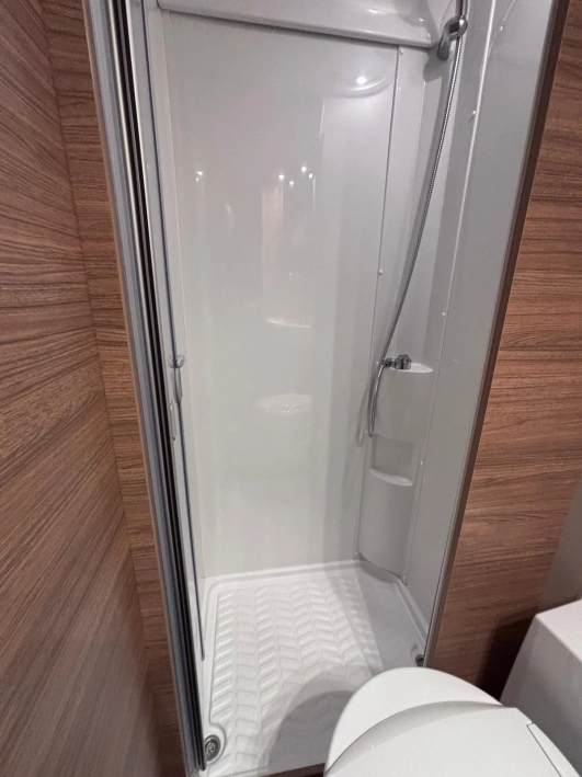 - Kabina prysznicowa de Luxe z plastikowymi panelami i drzwiami prysznicowymi – oddzielna