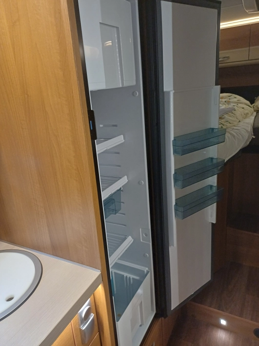 Kuchnia: Duża lodówka z systemem AES (automatyczne przełączanie źródła zasilania: gaz/12V/230V).